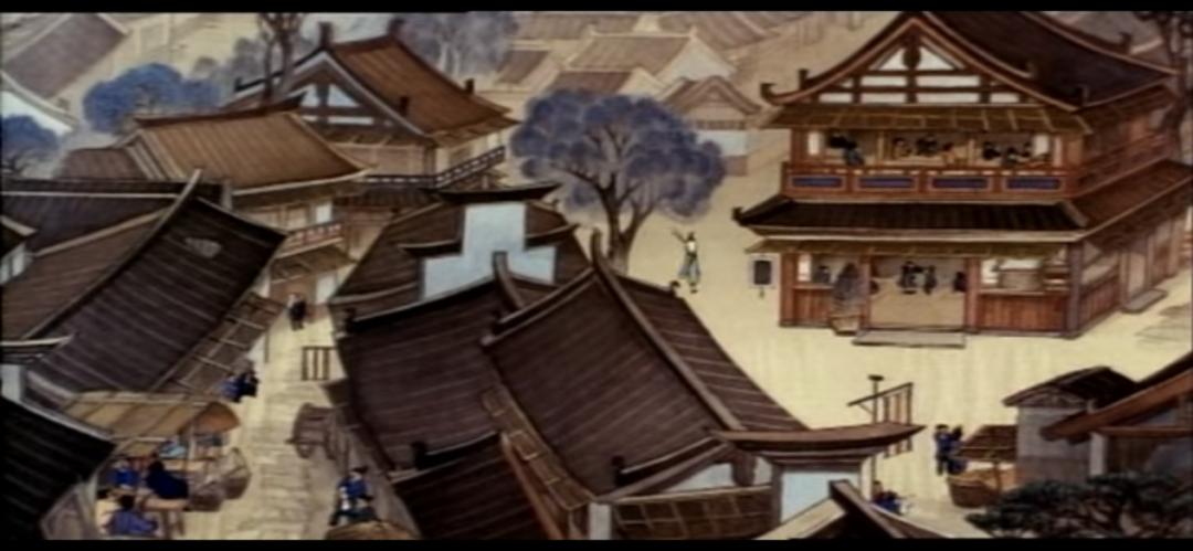 在这部电影中,主创们大量运用国画材料,以细腻的工笔重彩塑造了山水绘画风格的背景,巧妙地展现了中国古典长卷之美。