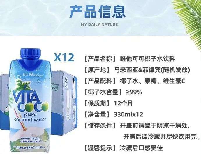 选购 Vita coco 往往是因为「天然、健康、好喝」。对于爱好者来说,它是一种「比水好喝、没有茶涩味」的饮品;对于其他人来说,它「味道奇怪、一股馊味」。口味是见仁见智的,但椰子水在这方面较为固定,不像国民度更高的豆奶可以调整配方。