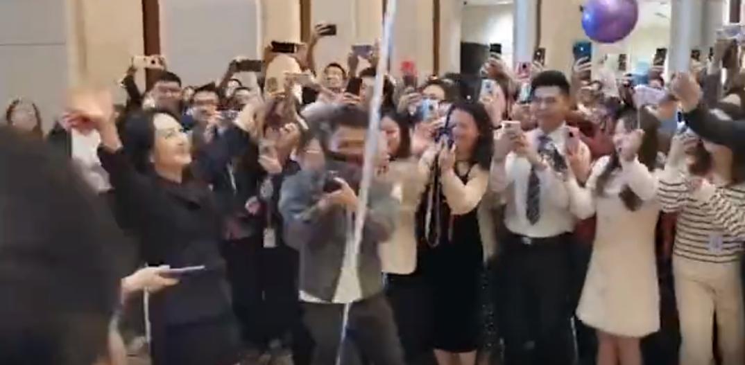10月25日,一段孟晚舟回到华为上班的视频在全网流出。孟晚舟身穿黑色套装,双手向华为员工致意,在场的华为员工十分振奋,并高呼她为“女神”。