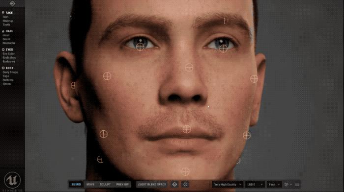 今年3月份,美国Epic Games也发布了一款3D高保真数字仿真人生成器MetaHuman Creator,零基础用户可以在几分钟内快速“捏”出一个栩栩如生、拥有细腻的微表情的数字人,大公司则可以批量制作3A级游戏中的NPC。