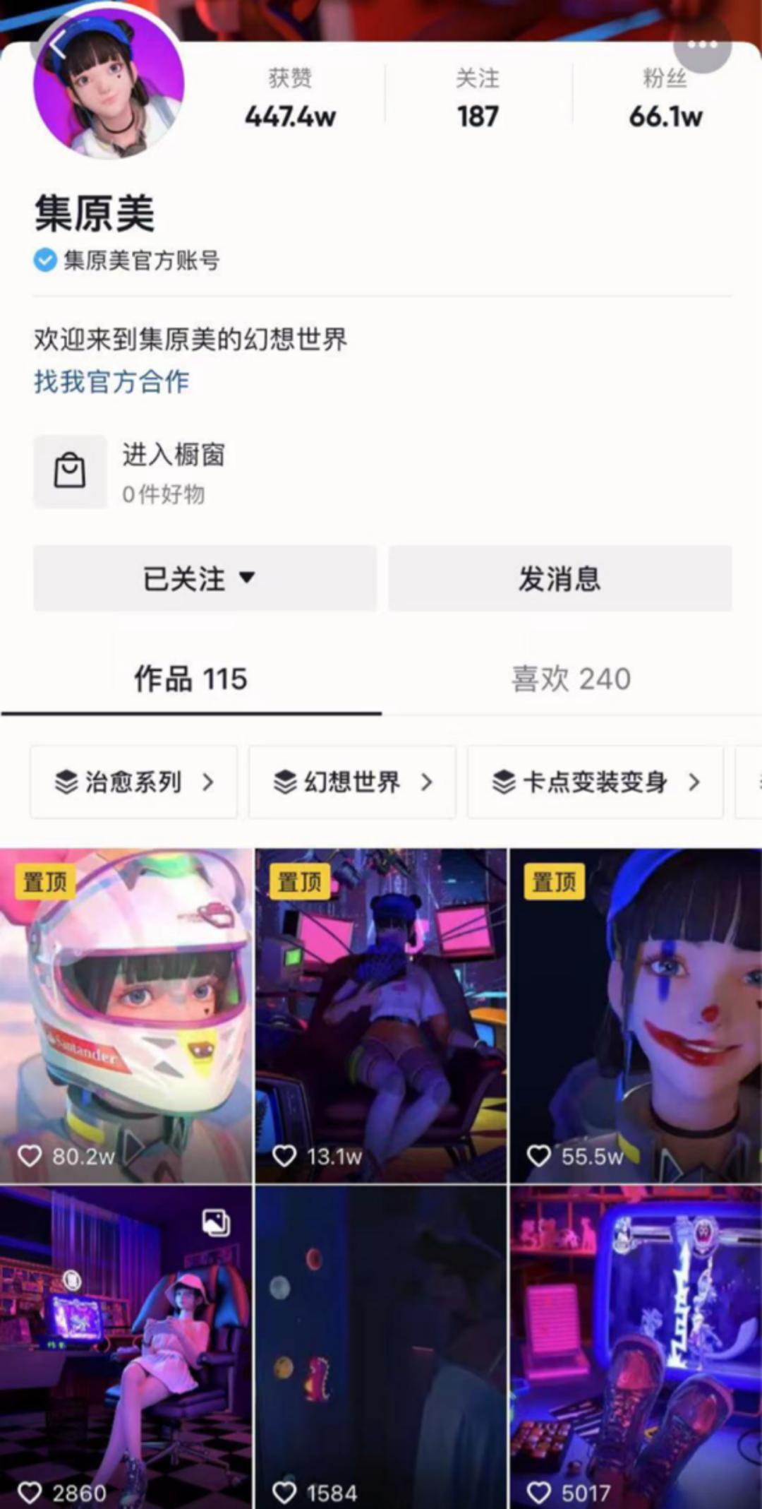如今,集原美在抖音粉丝超过66.1万,已经和蒙牛、喜茶、PUBGM等有过商业合作,但目前营收还不能覆盖成本,刘勇将虚拟人领域称之为熬年头的行业,并预计在明年年中集原美IP能实现盈利。