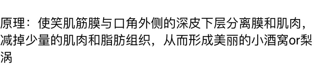 不过,医美上确实有 “酒窝成形术”这样的操作,大致原理是在脸颊里埋线,强制牵引特定位点的肌肉组织。背后的风险有酒窝做歪、酒窝太深、酒窝太浅、酒窝消失、酒窝不自然等多种后果,且有感染风险,使用需谨慎。