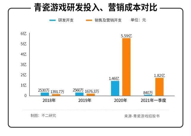 硬币的另一面,青瓷游戏呈现轻研发、重营销的倾向。