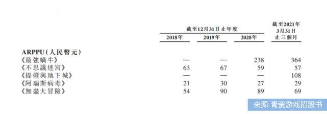 由此,青瓷游戏2020年ARPPU(每名付费用户每月平均收益)也从2018年的47元提升到2020年的206元。