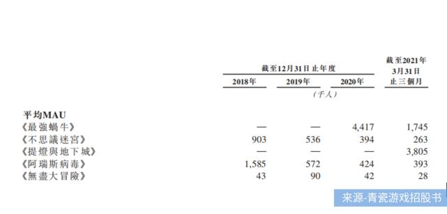 从平均MAU来看,《最强蜗牛》2020年平均MAU达到441.7万人,凭一己之力,将2020年四款游戏的平均MAU提至344.8万人。