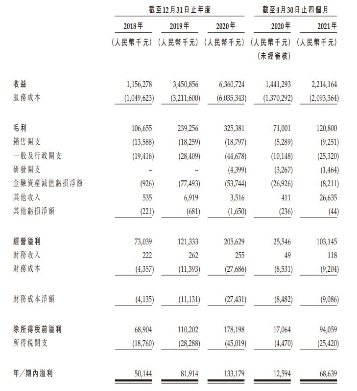 财务数据方面,据招股书显示,优矩互动2018年、2019年、2020年营收分别为11.56亿元、34.5亿元、63.6亿元;2021年1-4月为22.1亿元,2020年同期为14.4亿元。
