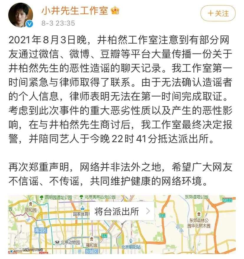 而从舆论环境来看,一系列塌房事件后,不但官方媒体越来越频繁下场发声,也在造成大众情绪的排斥和娱乐行业在舆论场下的失誉,甚至在一些事件上会采信非确定信息。一个明显的例子是吴亦凡事件后,被卷进舆论风波的何炅、范冰冰、井柏然在第一时间报警,选择引入公权力为自己证明,而非以往常规的以律师函对大众发声。