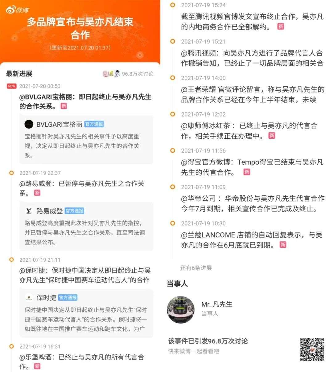 其次是外部环境,品牌和项目方在监管环境下会更加敏感,选择合作艺人时也更加谨慎,且不排除会在事态没有定论、但舆论导向一致的情况下,尽量避免和问题艺人合作,甚至解除现有的合作。此前吴亦凡、张哲瀚和霍尊出现负面舆情后,相关品牌方基本都在一天内做了切割。