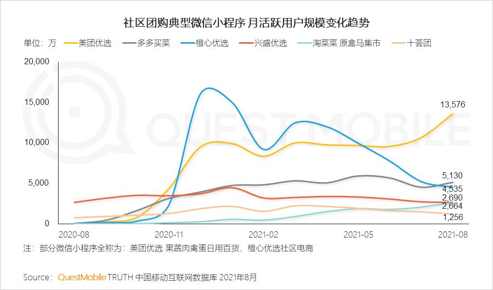 2、社区团购赛道竞争激烈,头部平台橙心优选逐渐收缩战场,美团优选及多多买菜流量持续提升