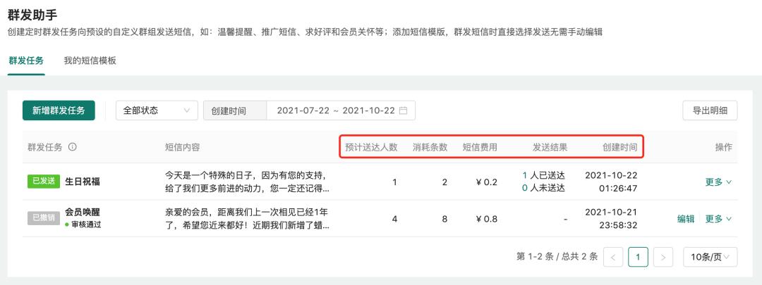 短信群发数据:可在每个任务对应的“更多-详情”里查看;