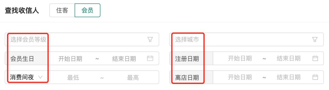 此次智能短信新增了「群发客户属性」功能,尽可能地丰富客人属性,例如住客状态、渠道来源、入住房型、会员等级、生日、城市等。为客人打标签,才能更为精准地刻画用户画像,了解客人的消费能力与深度需求。