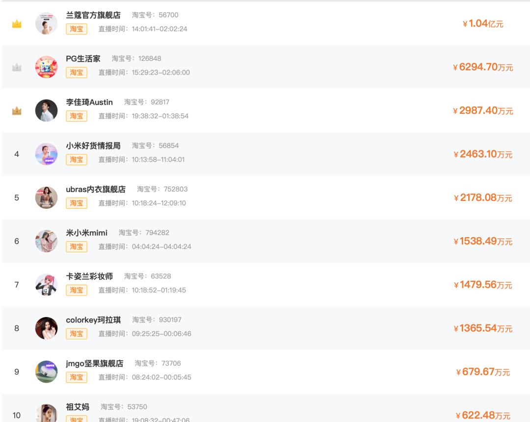 《财经故事荟》查阅小葫芦平台的最新数据发现,10月25日-10月26日临晨结束的当日直播排行榜中,Top10榜单中,品牌和店铺自播占了六席,并且前两位都是品牌自播,分别是兰蔻和宝洁,李佳琦则仅位居第三。