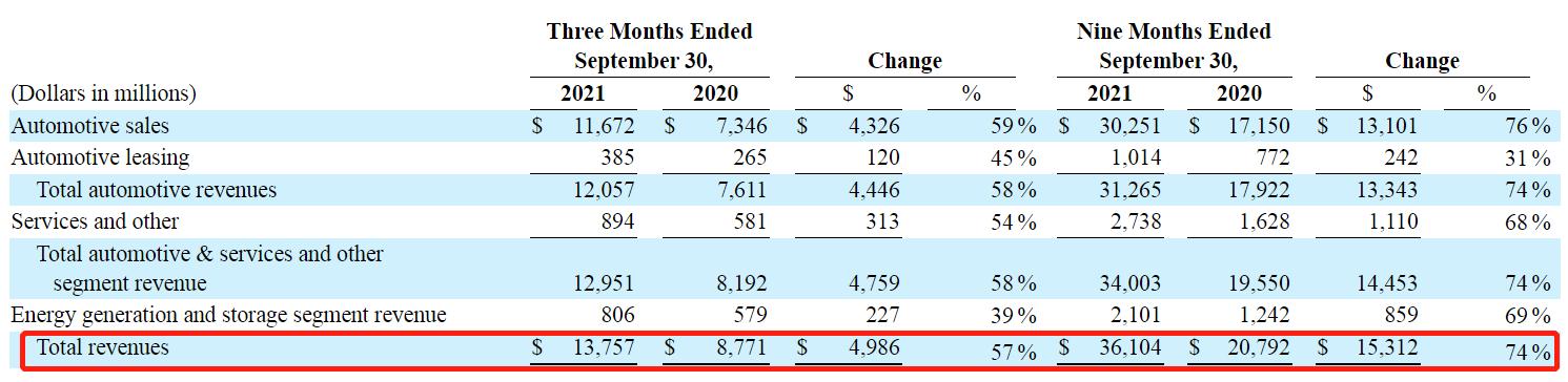 分拆业务来看,特斯拉来自汽车业务的营收为120.57亿美元,同比增长58%;来自发电和储能业务的营收为8.06亿美元,同比增长39%;来自服务及其他业务的营收为8.94亿美元,同比增长54%。