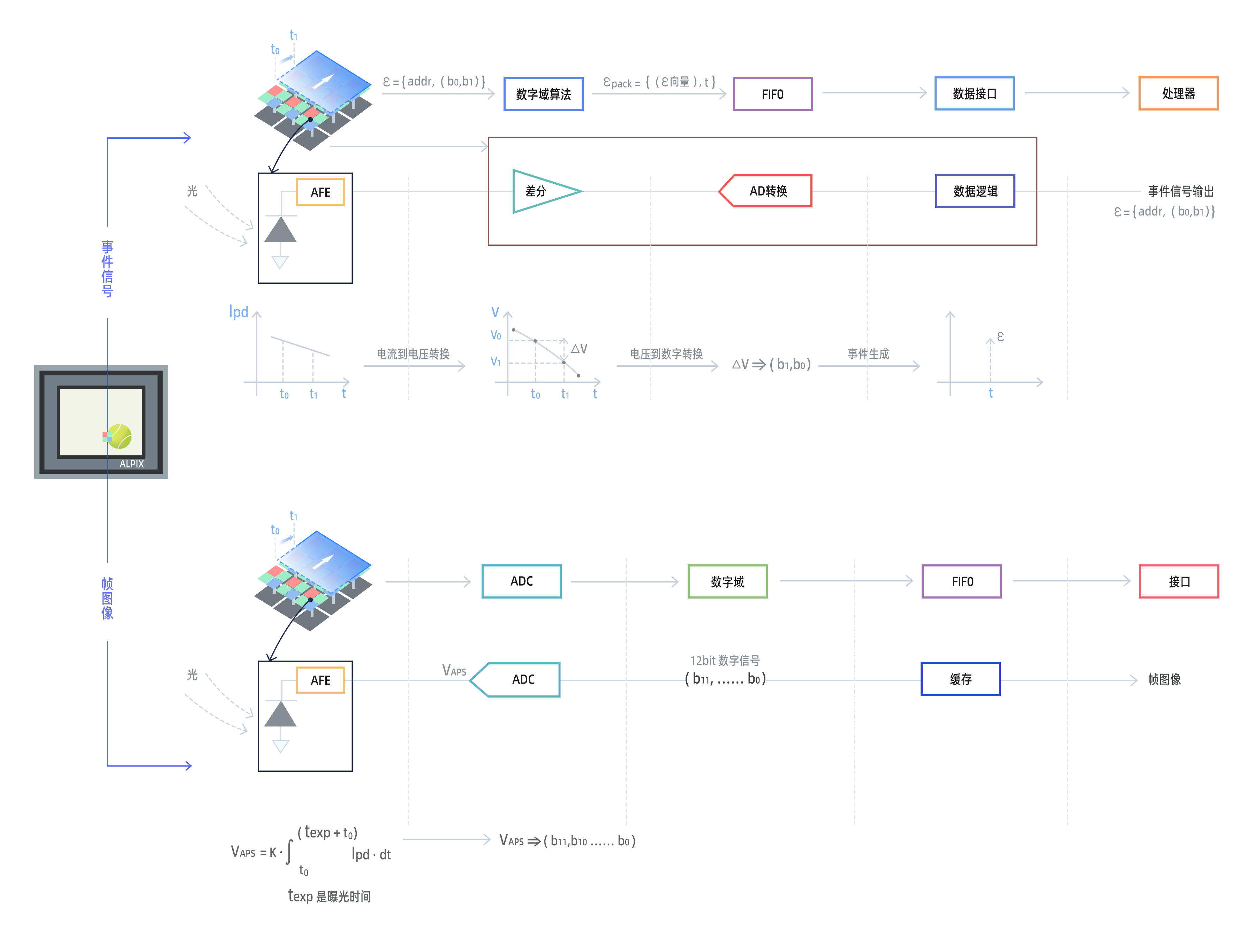 基于ALPIX-P的设计,锐思智芯研发了两个ALPIX系列传感器芯片产品,分别是ALPIX-Titlis(简称ALPIX-T)融合式低功耗仿生视觉传感与ALPIX-Eiger(简称ALPIX-E)融合式高端仿生视觉传感器。