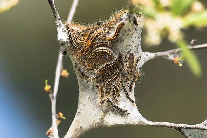 它可是一个名副其实的“大胃王“。在虫卵孵化出来后,这些幼虫就开始吐丝织网、咀嚼叶子。 经过四龄期之后,这些幼虫的食量就开始暴增 ,每天都在不停地啃食叶片,甚至开始吃树皮。几天的时间就能把整棵树的树叶全都吃光。