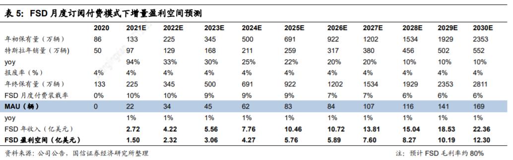 FSD在资本上拥有多少想象空间?在2020年第一季度的财报会议上,Zachary Kirkhorn披露,截止2020年Q1,特斯拉的FSD递延收入已经超过6亿美元。国信证券在此基础上推算出,2020年FSD收入约为9.50亿美元。国信证券分析师在最新的研报中推算得出,“预计2025年,FSD贡献收入119.84亿美元,在营收端占比提升至12%。此外,后续内置的功能型软件的激活、娱乐导向的应用型软件变现、中长期订阅服务或将特斯拉成为新增长点。届时,软件将成为其商业模式核心组成部分,财务数据将更反应特斯拉的科技属性。”