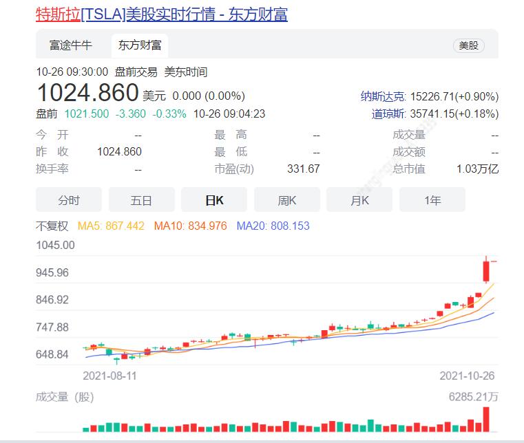 美东时间10月25日,特斯拉股价突破1000美元关口,市值突破万亿美元,连马斯克都在推特上惊呼“Wild $T1mes”(疯狂的万亿时刻)。美东时间10月21日特斯拉发布Q3财报以来,其股价就一路看涨。马斯克也“如约”缺席了这一季度的财报电话会议,正如他在上一季度财报会上所说,“以后没啥大事儿,我就不来了。”