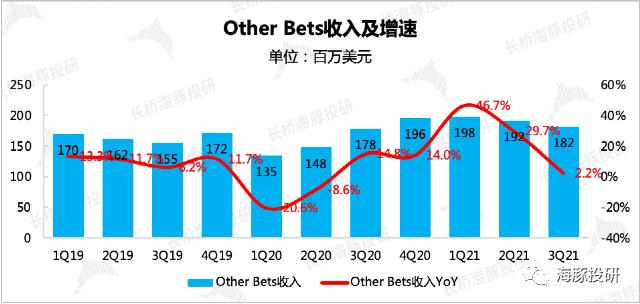 YouTube在三季度实现收入72亿,同比增速43%,相比二季度的84%下滑明显,虽然去年基数较高,但在全球视频化潮流下,市场的预期明显更加乐观,给到了45%-50%的增幅。上季度公司披露YouTube全球月活已超20亿,并且对短视频平台Shorts(5月上线)寄予厚望,从这次成绩单来看,Shorts表现应该还行,但与同行对比还需努力。具体经营进展我们仍然关注后续电话会内容。