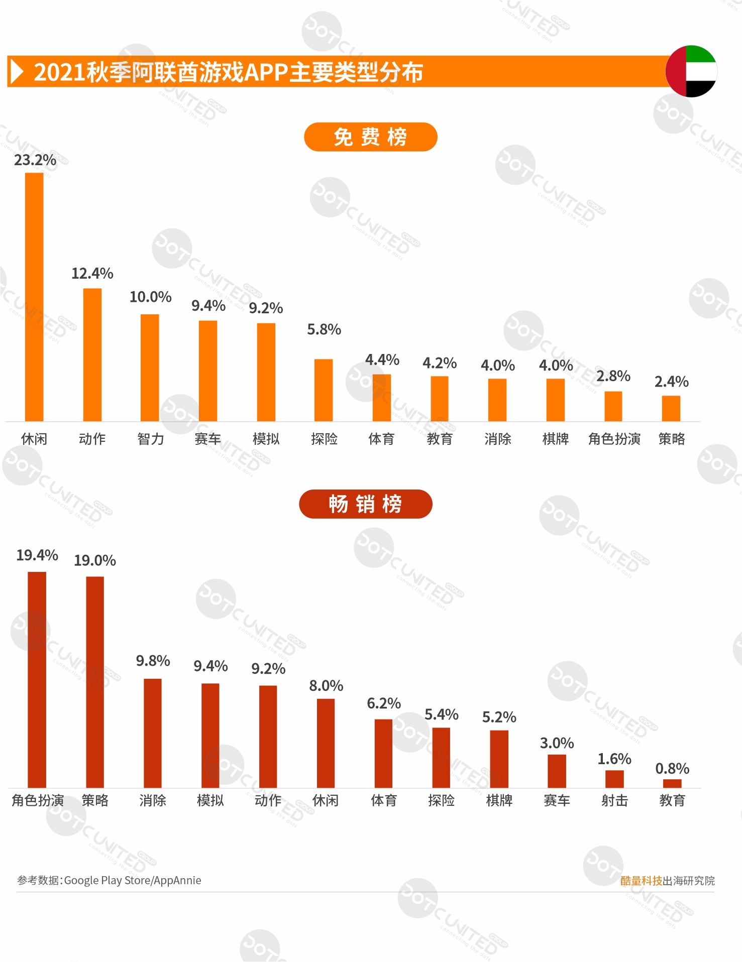 除角色扮演、策略、休闲等主流类型外,智力、消除、赛车等在阿联酋也是热门品类。