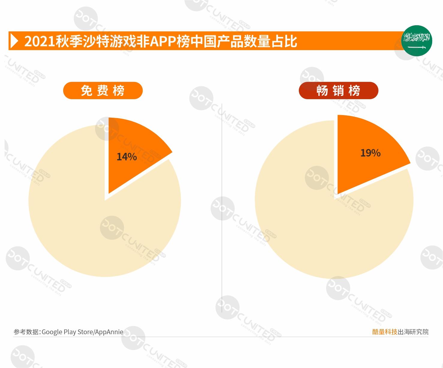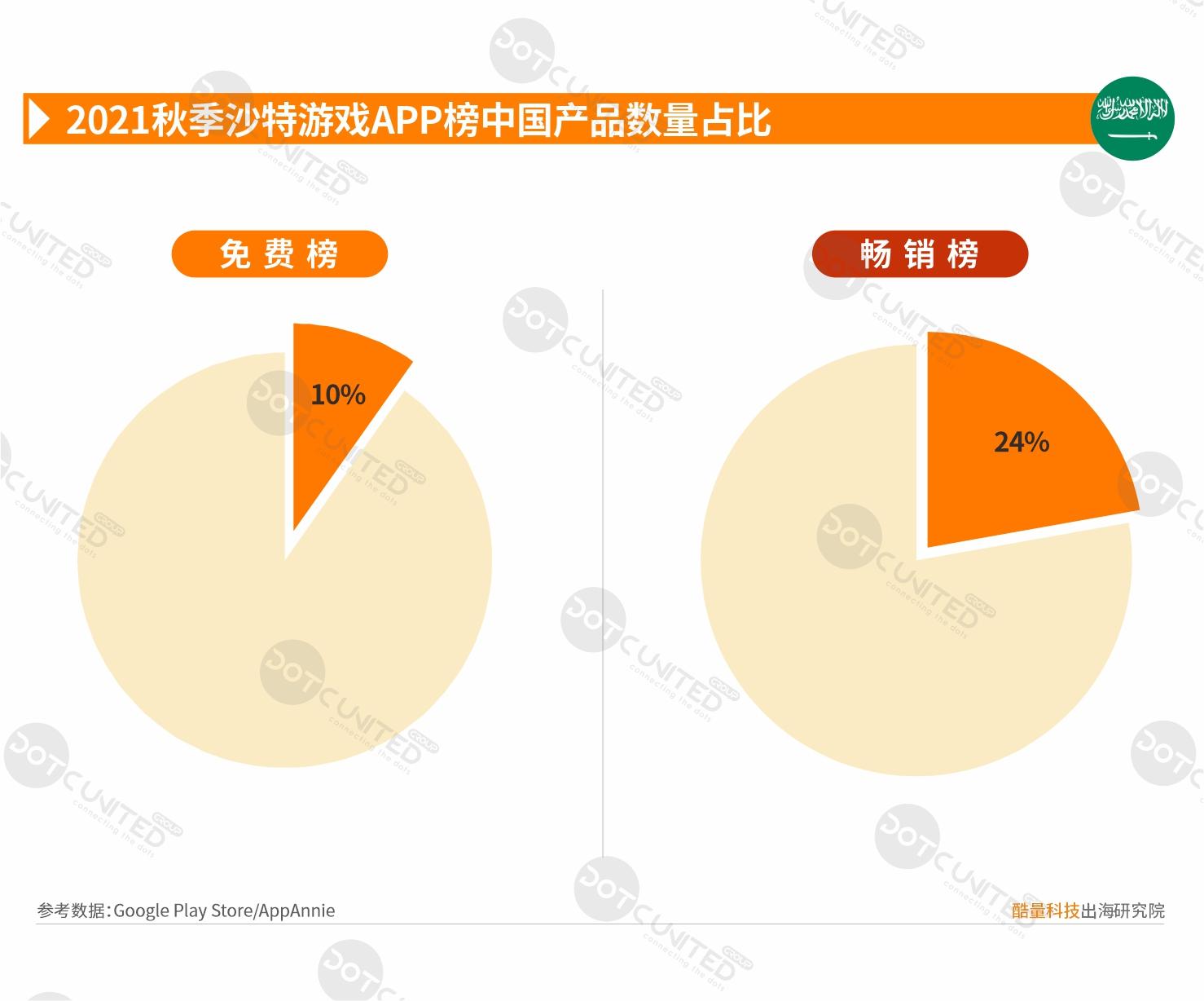 统计沙特游戏榜Google Play Store TOP500显示,免费榜中,国内产品占约10%,畅销榜中占比24%。