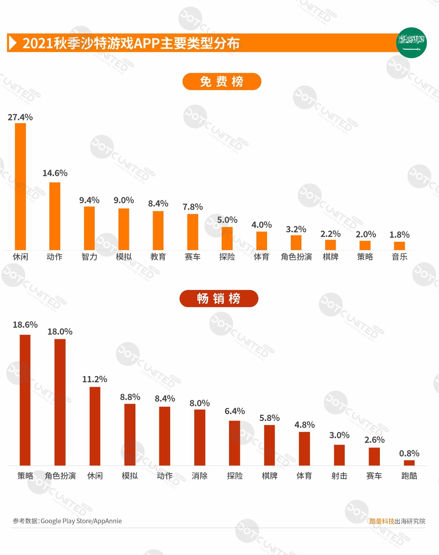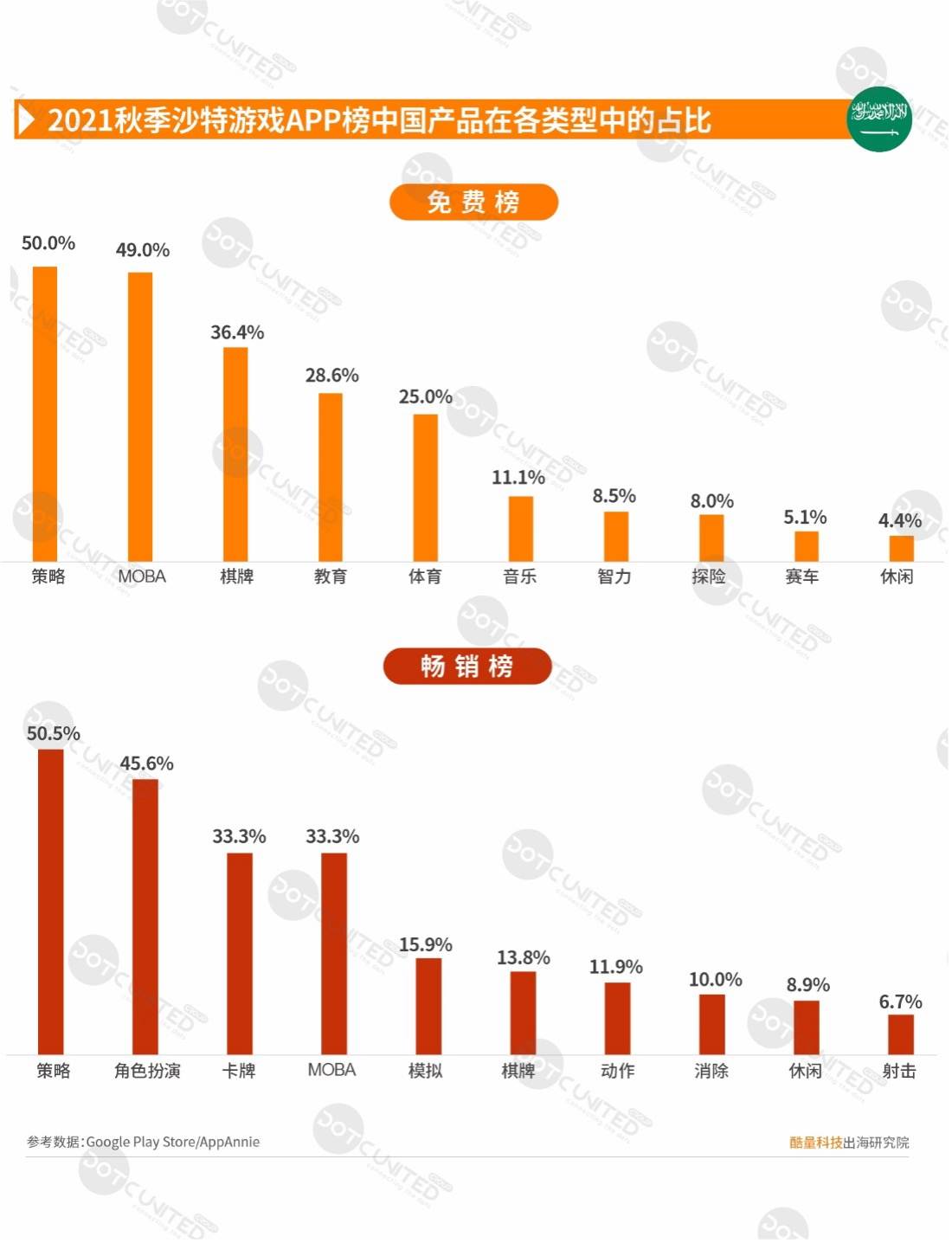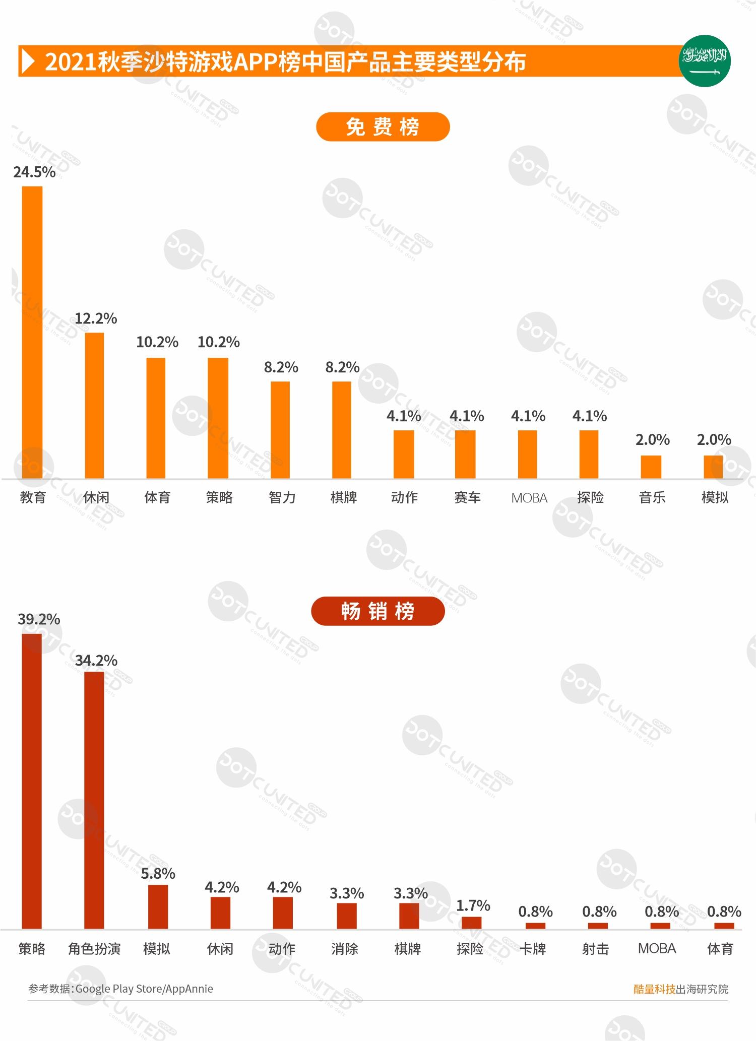 综上所述,目前中国出海沙特的游戏类型以策略、角色扮演、教育类为主流。此外,模拟、体育、休闲等类型也是国内出海沙特的热门类型。