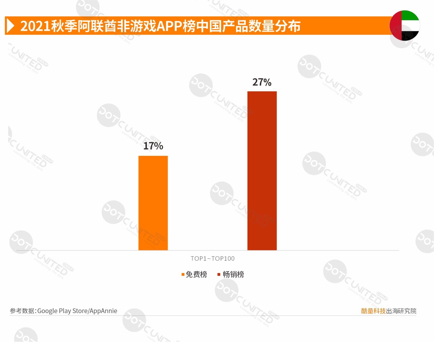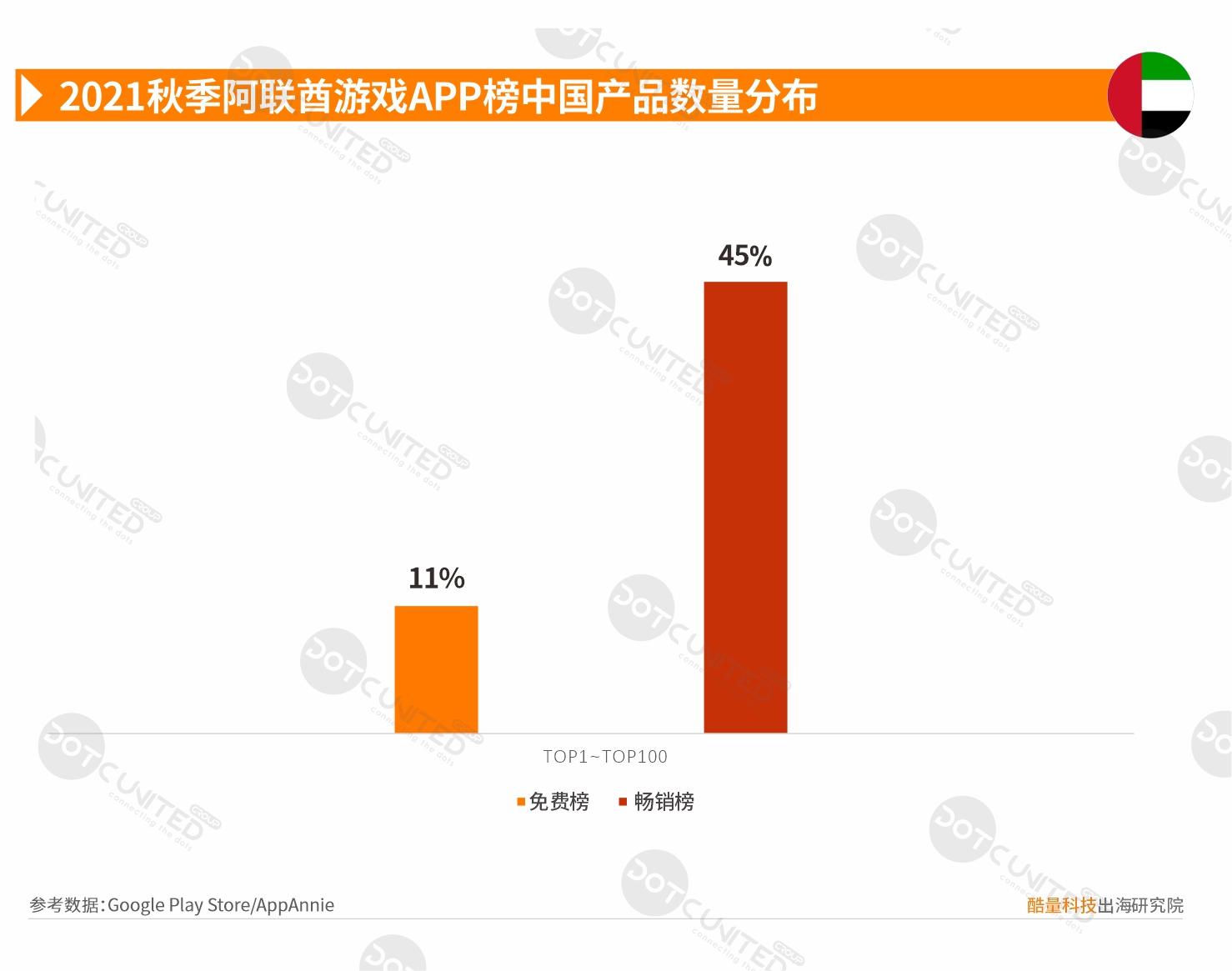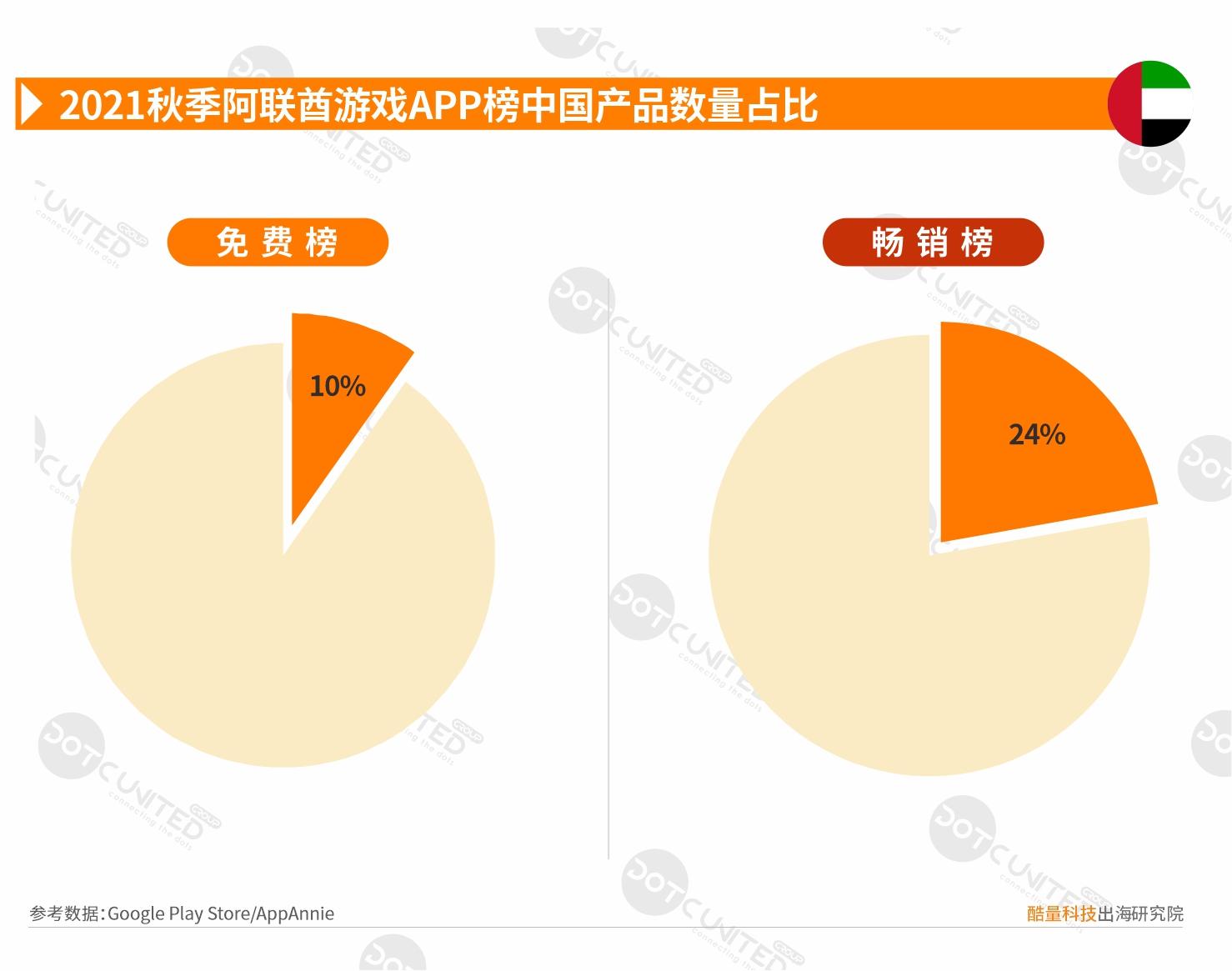 统计阿联酋游戏榜Google Play Store TOP500显示,免费榜中,国内产品占约10%,畅销榜中占比24%。