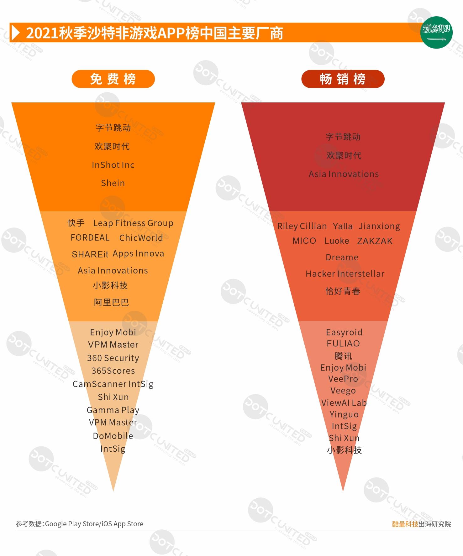 此外, InShot公司凭借同名产品InShot等数10款应用、shein凭借旗下同名电商应用SHEIN、Asia Innovations凭借旗下蓝莓约、Uplive等产品,第三季度在沙特市场都收获颇丰。