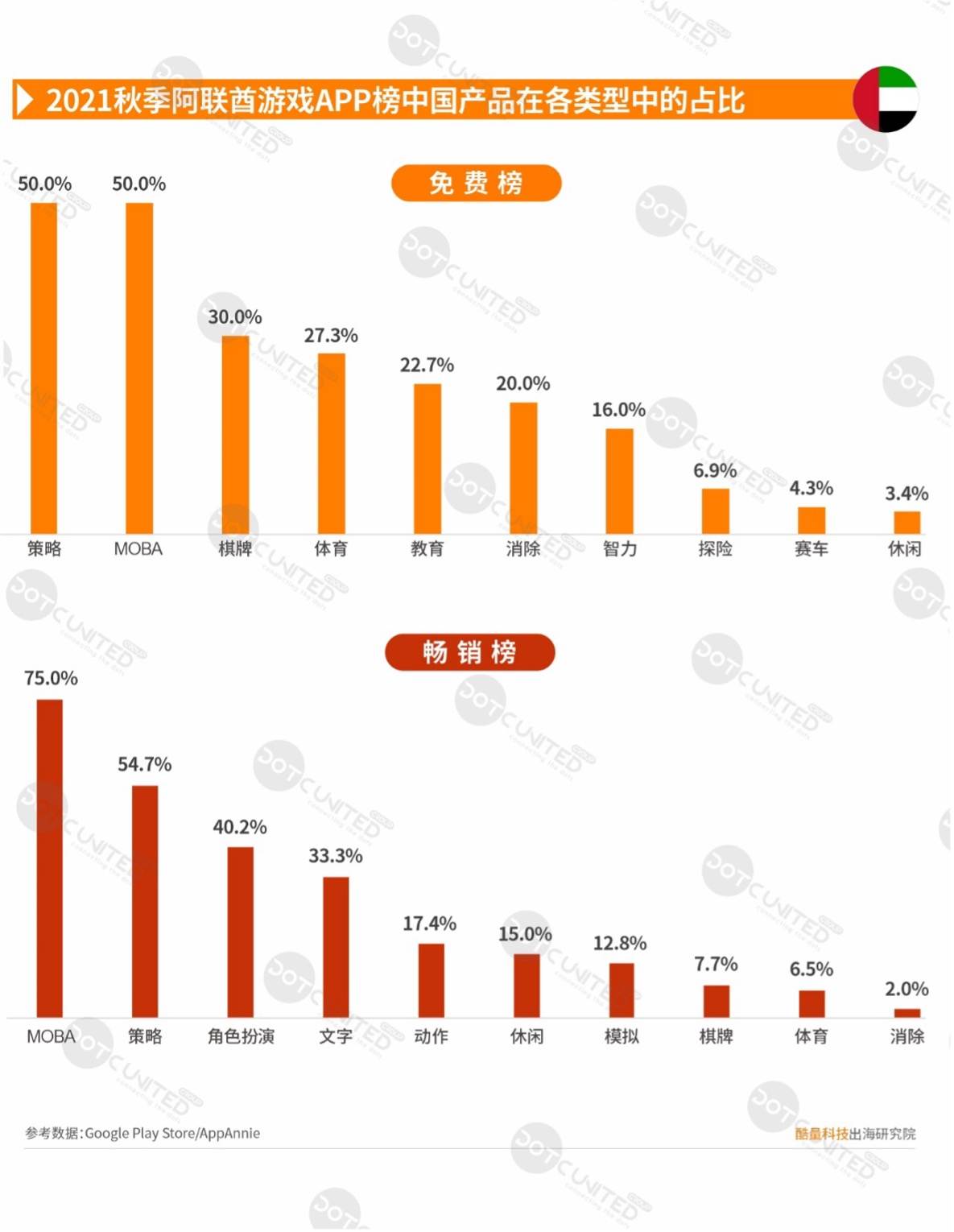 综上所述,目前阿联酋市场的游戏中,中国产品在策略和MOBA类中占据着主导地位,此外,角色扮演、文字、棋牌和体育等类型中,中国游戏也占有重要席位。