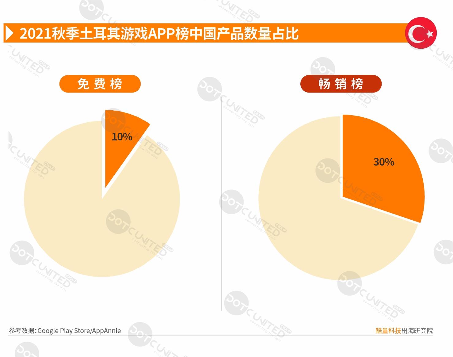 统计土耳其游戏榜Google Play Store TOP500显示,免费榜中,国内产品占约10%,畅销榜中占据30%。