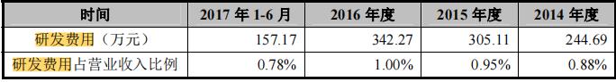 在研发费用投入上,毛戈平公司也显得相当“小气”。2014至2017年上半年,毛戈平公司研发费用占营收比重最高仅为1%,甚至不及行业平均值——3%。