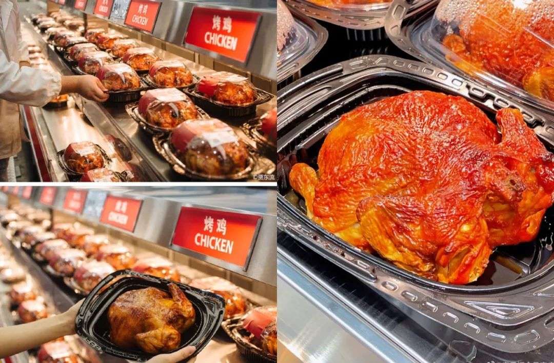 从左至右,分别为山姆会员店和家乐福会员店的烤鸡产品,图源山姆会员商店和家乐福会员商店