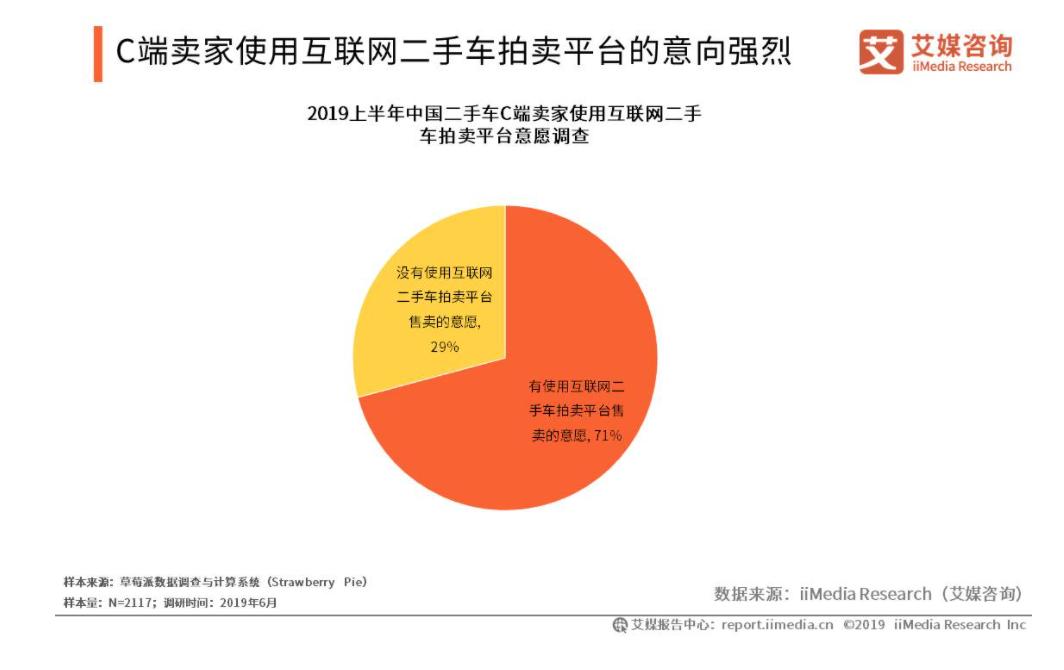 在汽车交易的渠道上,互联网汽车交易平台的出现为用户提供新的选择。以二手车交易为例,来自艾媒咨询的报告显示, 相比于传统的卖车渠道,C端卖家更倾向于使用互联网二手车拍卖平台,占比高达71%,原因是互联网平台的交易更透明、更有保障。