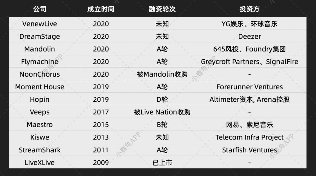 疫情是线下演出的毒药,也是线上演出的东风。短短不到两年间,美国已经有十几家初创公司涌现在流媒体直播赛道上。