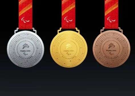 冬残奥会奖牌的设计与冬奥会相似。奖牌正面围绕残奥会会徽的圆环中除了残奥会的英文全称,还刻有残奥会以及“金”“银”“铜”字样分别对应的盲文。