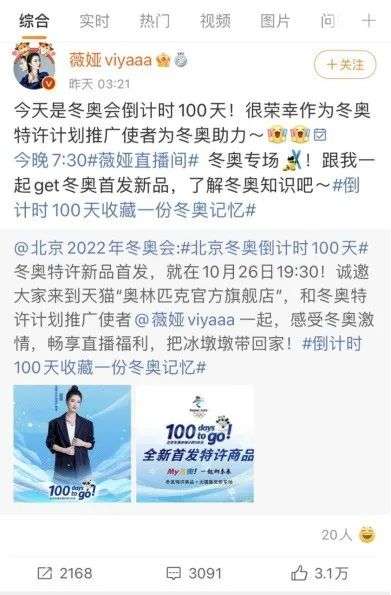 在营销宣传方面,虽然受疫情影响,北京冬奥会纪念品宣传直至百天倒计时时才大规模启动,冬奥会还是在宣传上找准了发力点:联合直播一姐薇娅推出冬奥特许新品首发,认准支持国风、关注冬奥热点并熟悉网络购物的年轻人为目标受众,以当下最流行的直播玩法,主推合计感强、风格时尚可爱、价格可接受的年轻人喜欢的日用品。