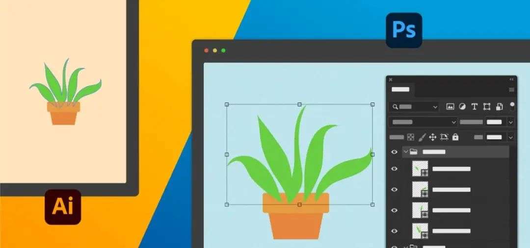 你可以轻松的将 AI 里的矢量图形、路径、矢量蒙版拖动到 Photoshop 中继续编辑处理。