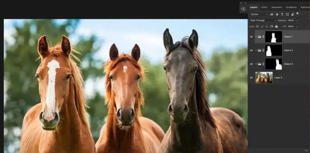 与其他选框工具类似,你也可以通过按下 Shift(macOS)或者 Ctrl 键,进行多项选择。另外,全新的图层菜单还新增了一键识别图层所有对象并添加蒙版的功能,通过 AI 计算,让操作更加便捷。