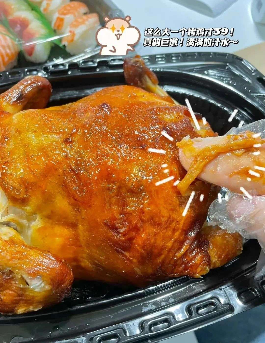 其他仓储超市也相继跟风——捕捉到山姆的成功,盒马X等超市也推出了烤鸡、瑞士卷等美食,曾有博主探店,结果惊奇发现,尽管内里不怎么一致,但外形首先就跟山姆出品几乎“一模一样”。