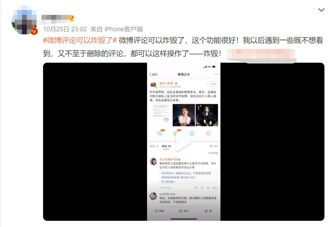 奇怪的操作又增加了,微博新增“炸毁”评论功能:大家都玩疯了