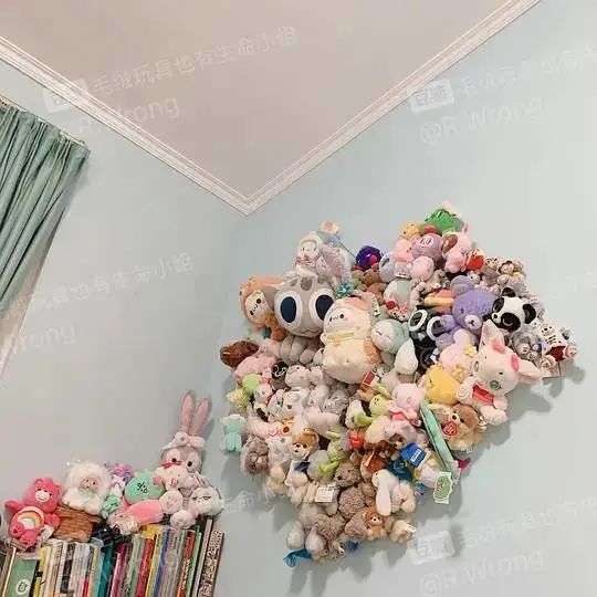 玩具设计师阿星的家里有一整面墙的毛绒玩具,图片:受访者提供