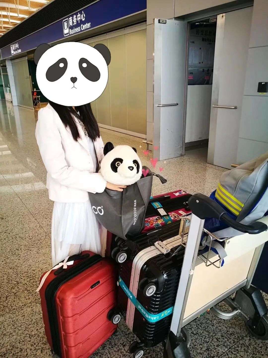 “去日本读书的时候,我带了两大托运箱的行李,但无论我自己的东西有多少,总有四分之一个行李箱是用来放溜溜的,”Sala回忆说。就连Sala在日本读研的时候,她和身在国内的男友也会分别带溜溜和MiuMiu,“就像带小孩一样”。两人大约每半年一次的见面,也会带自己“养”着的熊猫娃娃去对换。