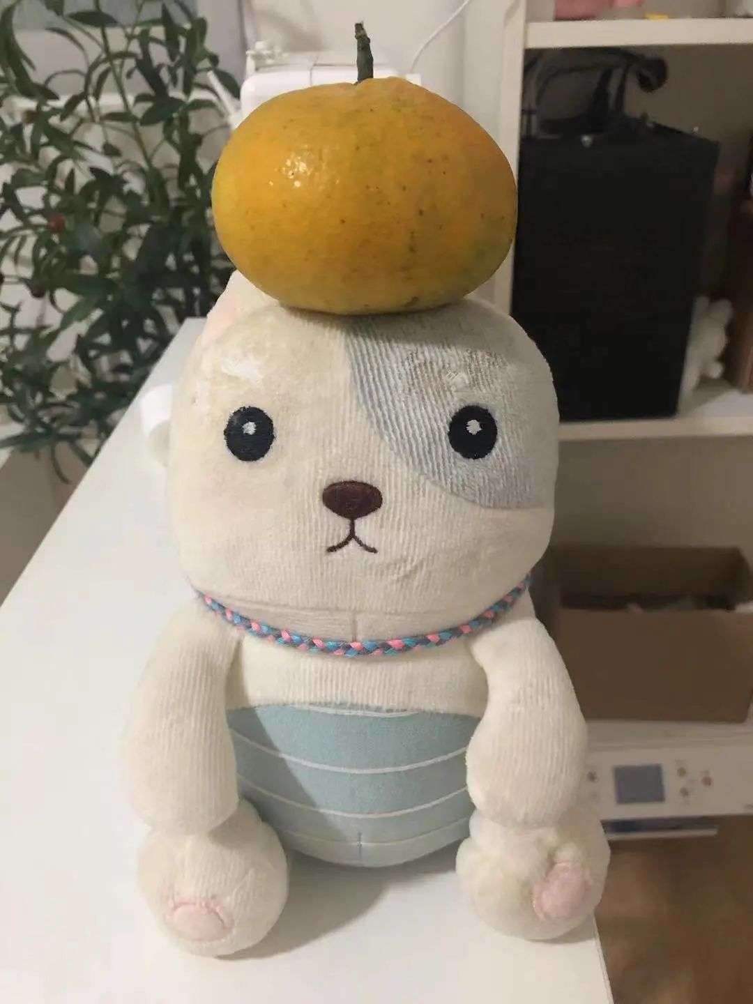 蛙雷近期修复的一个毛绒玩具,修复前的脸很塌,修复以后就挺实到可以顶起一个桔子了,图片:受访者提供