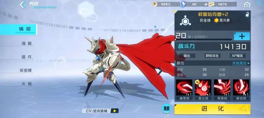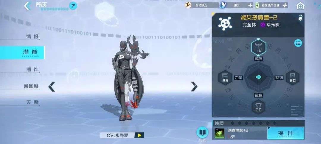 潜能分为四个选项:力量、体质、坚韧和敏捷,四项数值提升到上限后可以进阶,增强数值对于数码宝贝来说还是能带来相当明显的变化。