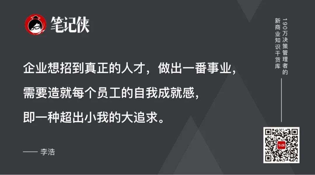 真正的好企业要想招到真正的人才,要想做出一番事业,需要造就每个员工的自我成就感,即一种超出小我的大追求。