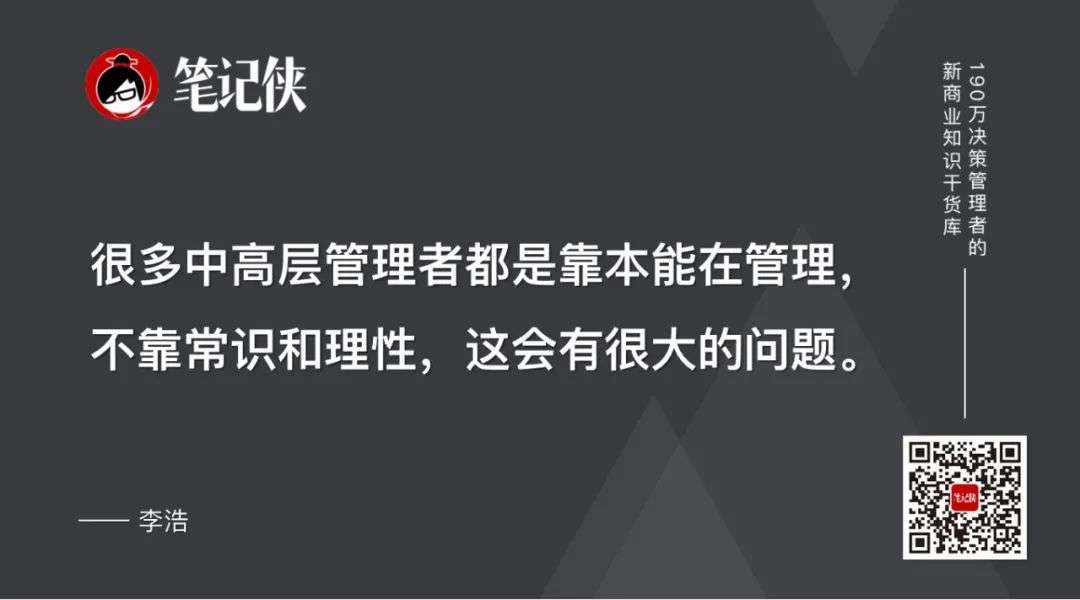 实际上,很多中高层管理者都是靠本能在管理,不靠常识和理性,这会有很大的问题。