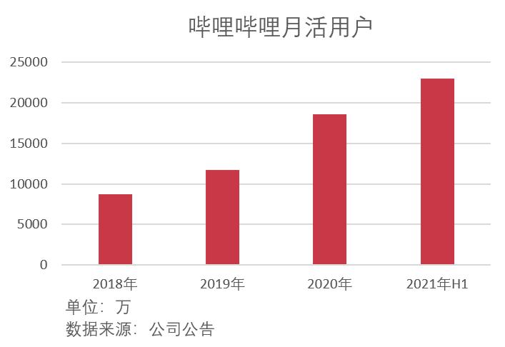 哔哩哔哩的MAU在近两年半的时间里同样保持增长,2021年上半年已经突破2.3亿,为游戏发行提供了潜在的用户基础。