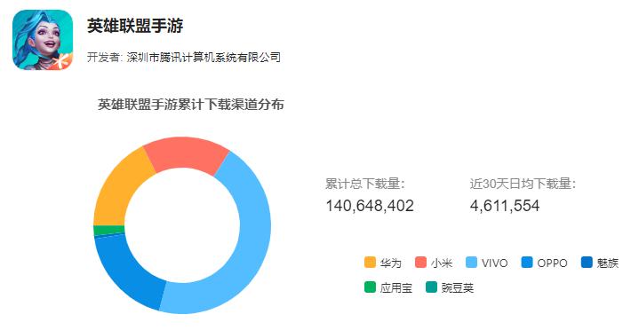 以10月新上线的《英雄联盟手游》为例,从七麦数据的数据来看,来自于应用宝的下载量仅占安卓版本的2%不到,大部分的下载来自于硬核联盟和小米。