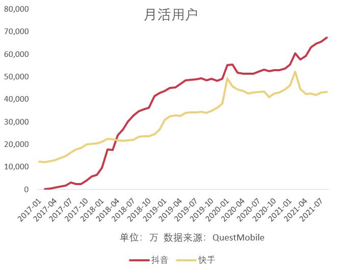 抖音和快手靠着短视频内容吸引了大量的用户,抖音的MAU已经高达6亿,快手也有达到了4亿的水平,可以说是有着独一档的流量池。