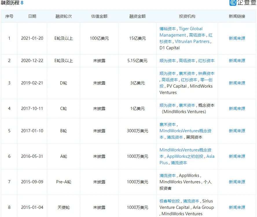 最新的一轮是今年1月完成的15亿美元F轮融资,该轮融资由其老股东红杉资本中国基金和高瓴资本领投,博裕资本、老虎基金、Vitruvian维恩资本、D1 Capital等机构跟投。此轮融资后,货拉拉的估值达到了100亿美元(约650亿元),当时就已经传出货拉拉今年下半年IPO的消息。