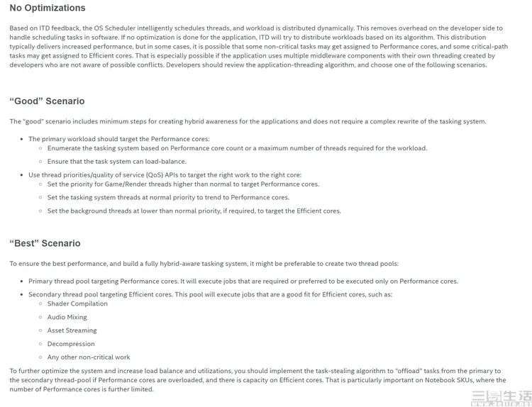 根据Intel的说法,这种基于程序操作优先级的核心自动分配方式,在大部分情况下表现都很好。但是如果一个程序本身需要用到多个线程,那么此时Intel就建议开发者对应用进行一定的针对性优化了。